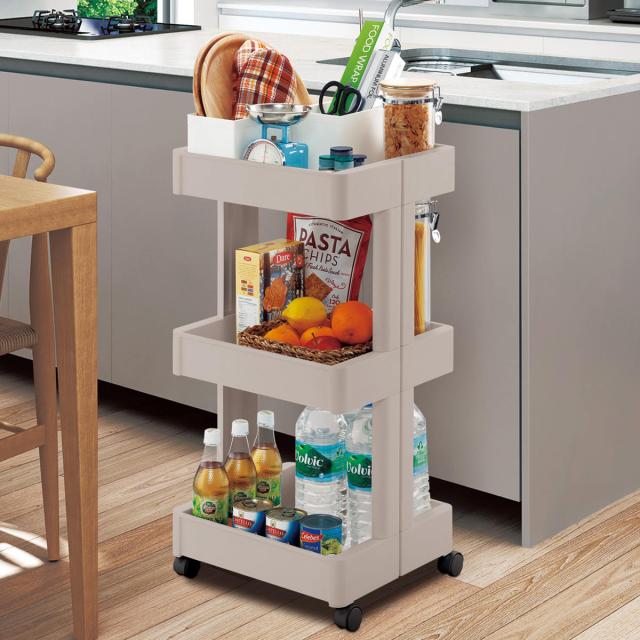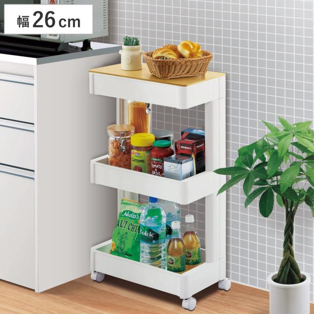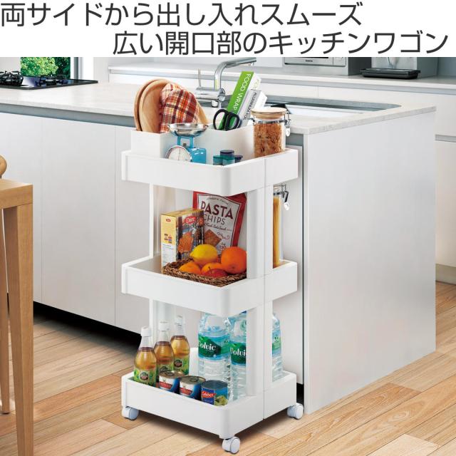 広い開口部で出し入れしやすいキャスター付キッチンワゴン