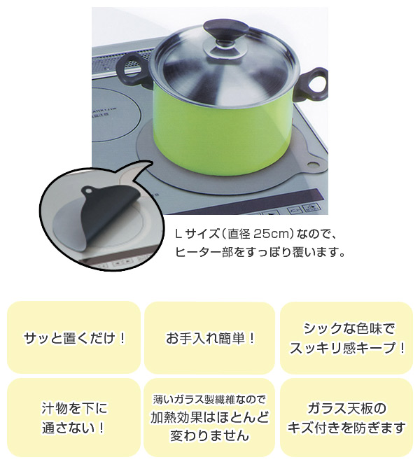 熱伝導率が変わらずスッキリとしたデザイン!IHマットLサイズ