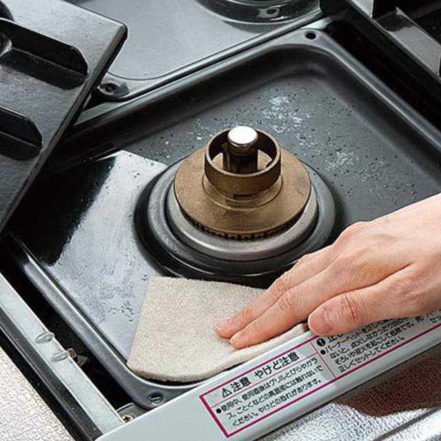 ●重曹とゴムラテックスのWのチカラで、洗剤を使わずに水だけでキッチン周りの汚れを落とします。