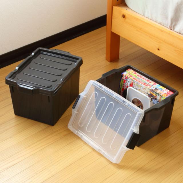 フタには、中身が見える透明タイプと、見えにくい黒透明タイプがあります。透明タイプのフタは中身が見えて管理がしやすく、黒透明タイプは見た目がスッキリとします。用途に合わせてご利用ください。