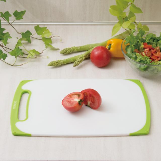 ゆとりをもって使える大きめサイズのまな板です。両面使用可能なので、食材によって使い分けできて便利です。