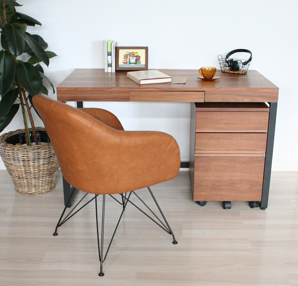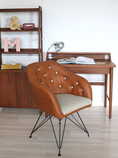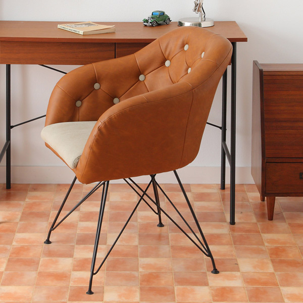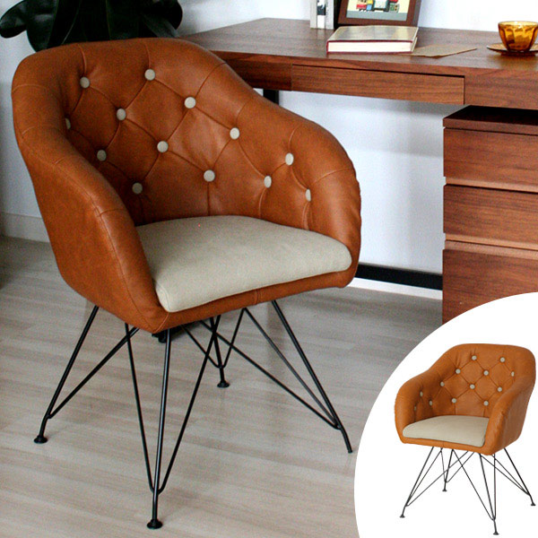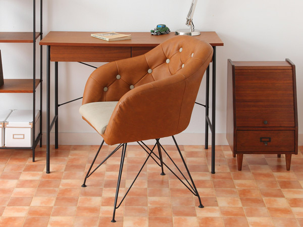 エッフェル脚と背もたれのボタンが印象的なデスクチェアー