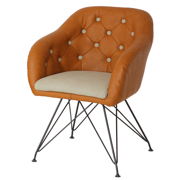 肘付チェア エッフェル脚 座面高46cm ベージュ布地/レザー調ブラウン ( 椅子 デスクチェア パーソナルチェア パソコンチェア リラックスチェア ワイヤー )