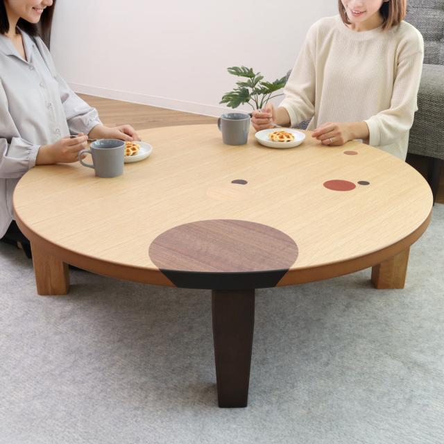 3〜4人用として使える105cmの丸型ローテーブル。この1台で食事も勉強もしたくなる安定感のあるテーブルです。ホッと心が和むやさしい色合いがお部屋の雰囲気を明るくします。