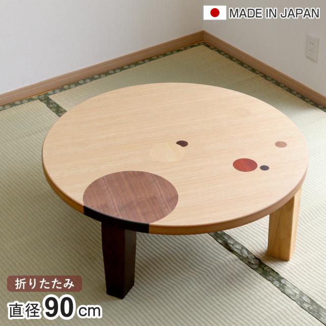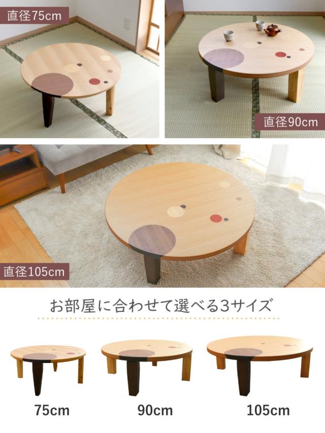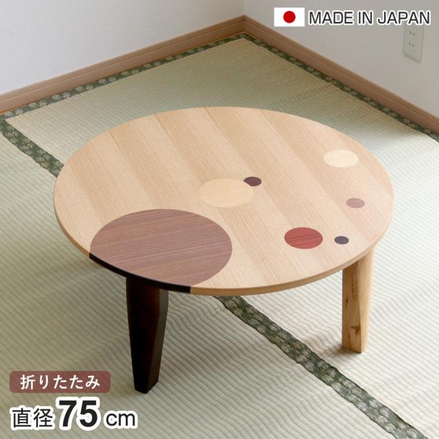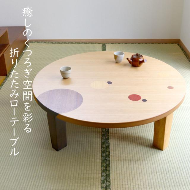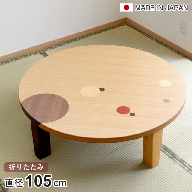 ローテーブル 折りたたみ 円型 直径105cm アース ( ナラ 象嵌入り 突板仕上げ 日本製 和風 円卓 ちゃぶ台 テーブル 天然木 木製 折り畳み 丸 3〜4人用 円 ドット バイカラー 食卓 かわいい 和室 リビングテーブル 木製テーブル )