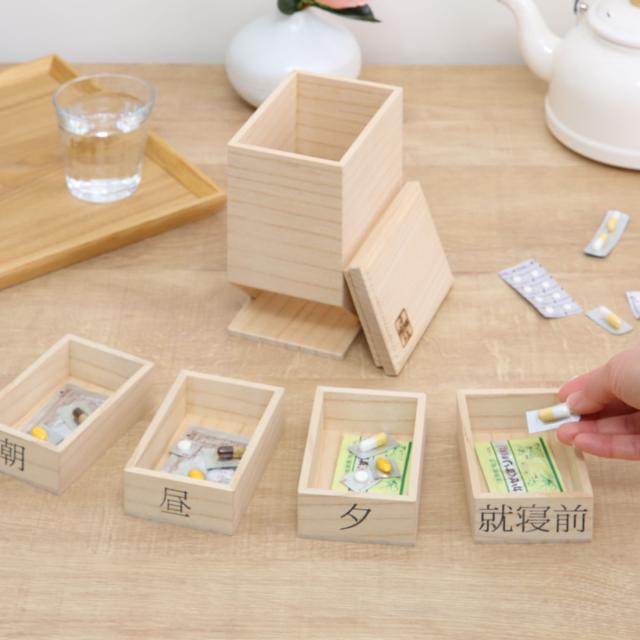 薬ケース 桐の薬入れ 無地 1日4回タイプ 1日分 桐製 ( 薬入れ お薬ケース 薬箱 引き出し くすりケース 収納 薬 くすり くすり箱 朝 昼 夜 就寝前 薬管理 粉薬 桐 木製 錠剤 ピルケース 飲み忘れ 間違え 防止 おしゃれ 和風 )