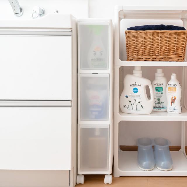 《 LH5209 LH312 スリムキッチンラック 収納ストッカー トイレ収納 シンプル 無地 白 ホワイト おすすめ オススメ 役立つ 人気 おしゃれ すきま収納 キッチン収納ワゴン ワゴン 引出し 洗面所収納 脱衣所収納 洗濯機横収納 洗面横収納 17cm 17cm幅 缶 500ml缶 洗剤 クリア 三段 》