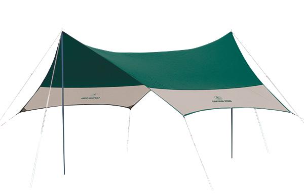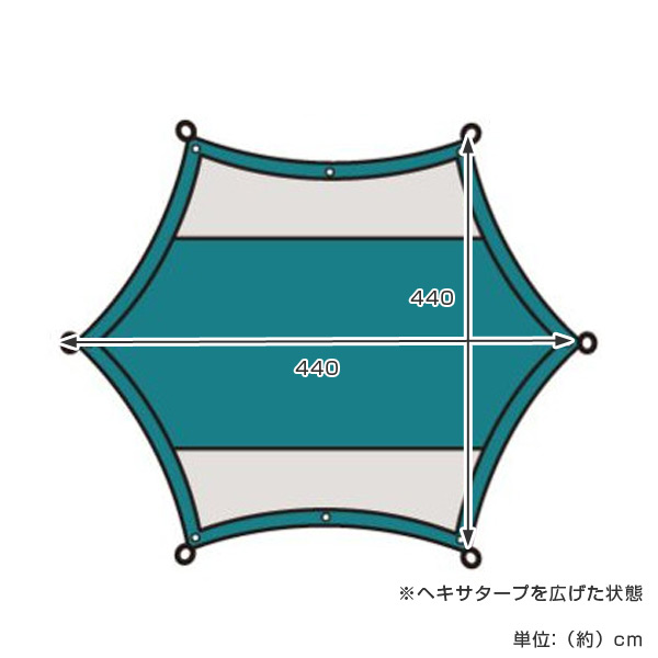ヘキサタープは六角形(ヘキサゴン)の1枚布のタープです。状況に応じて張り方を変化させることが出来ます。