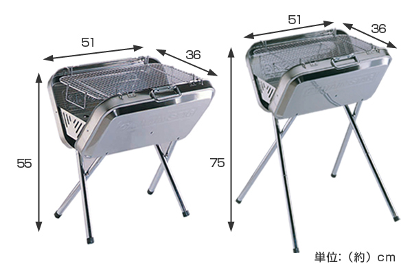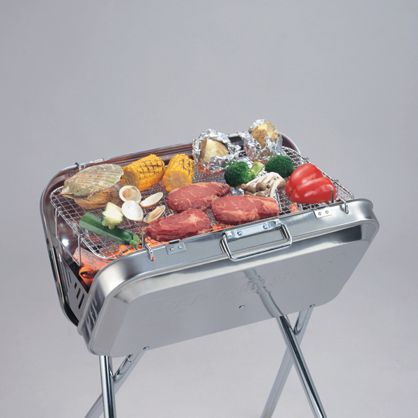 ●二段階に高さが調整出来る、本体を折りたたんで持ち運び簡単なV型バーベキューコンロです。