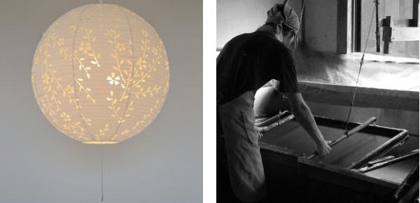 | 和紙×オーガンジー生地 オーガンジー生地に美濃和紙を重ね合わせた、今までにない素材を使用しています。生地に和紙を貼っているため、水に強く、破れにくいのが特長です。 | 職人のこだわりの一品 この商品は、素材から組み立てまで職人が手作りしているこだわりの一品です。材料となる和紙も照明にぴったりと合うよう、こだわりぬいています。 |