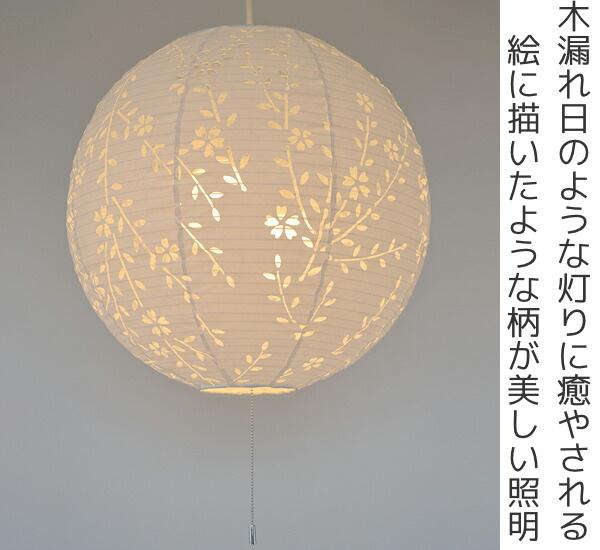 灯りを点けると木漏れ日のような光の中に、美しい桜の柄が浮かび上がります。和室に合わせれば純和風、洋室に合わせれば和モダンな雰囲気になります。一日の疲れを癒す空間を演出してみてはいかがでしょうか。