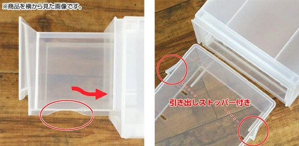 | 材質 | 本体・仕切り板・連結部品:ポリプロピレン 滑り止め:合成ゴム 前面パネル:スチレン樹脂 |