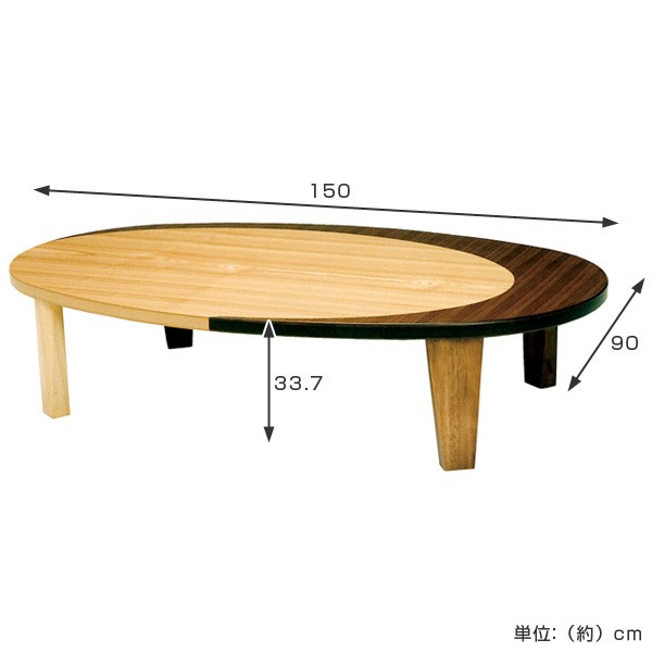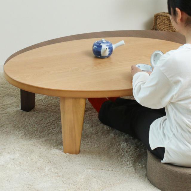 座卓 幅150cm オーバル型 折れ脚 クラン 木製 完成品 日本製 ( テーブル 天然木 折りたたみ 折り畳み 丸 リビングテーブル センターテーブル 木製テーブル ウォールナット ナラ 机 ちゃぶ台 おしゃれ 食卓 和風 座敷 円形 )