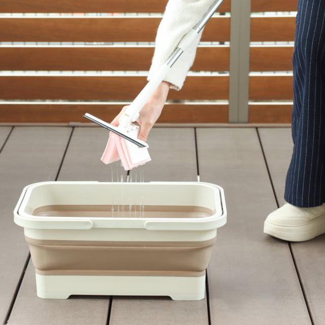 ヘッドが折りたためるので、クリーナーに含んだ余分な水を手を汚さず片手でしぼることができます。寒い時期でも冷たい水に触れずに絞れるので、快適に使えます。