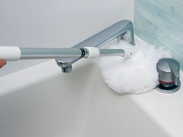 ●たっぷりの毛先が細かい所にも届くので、風呂ふたの溝や水栓まわりなど浴室のすみずみまでラクに洗えます。