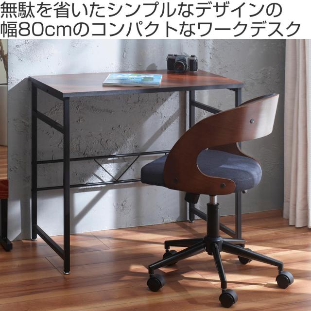 ワークデスク 机 ストーク 幅80cm ダークブラウン ( デスク シンプル コンパクト スリム 奥行 50cm 木目調 ビンテージ調 ブラウン スチール ブラック )