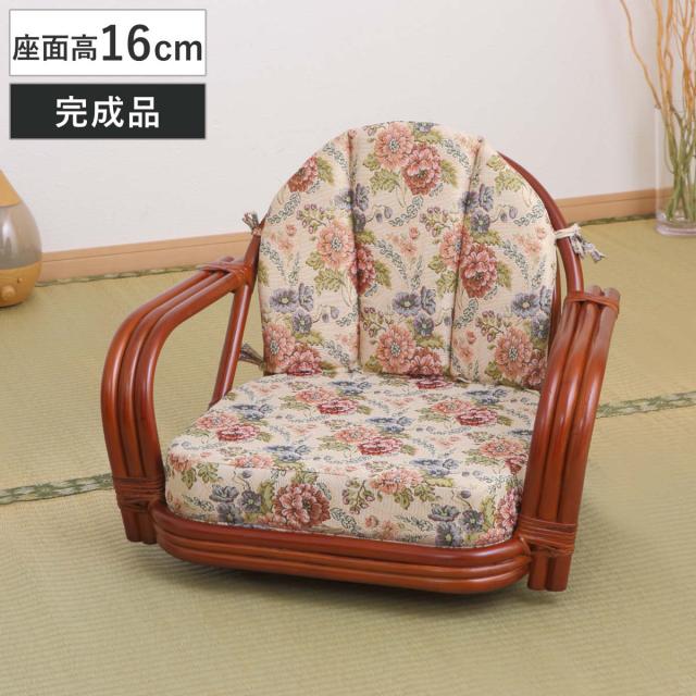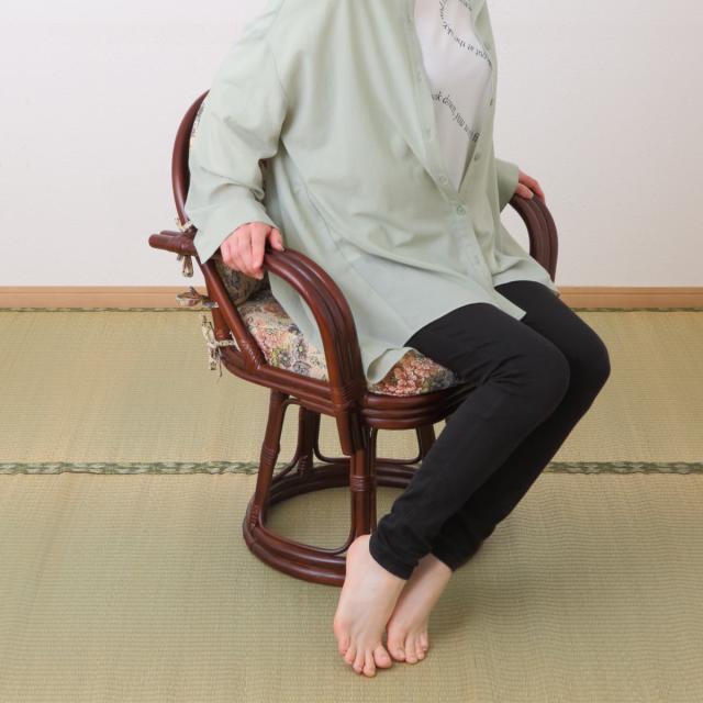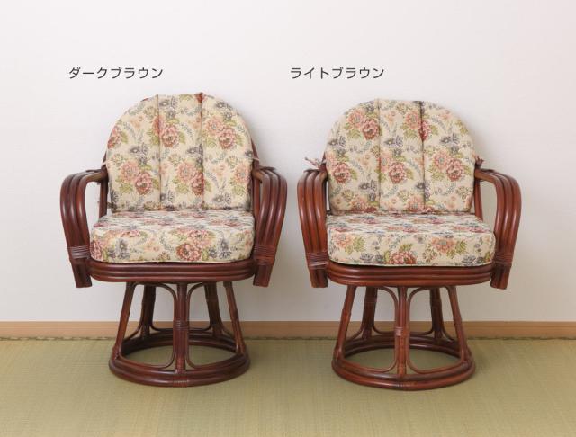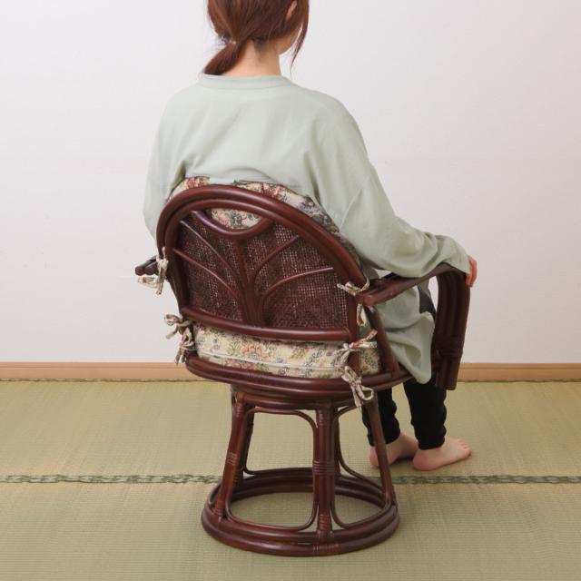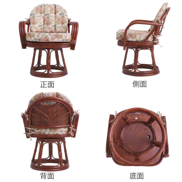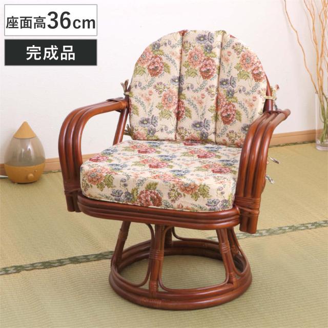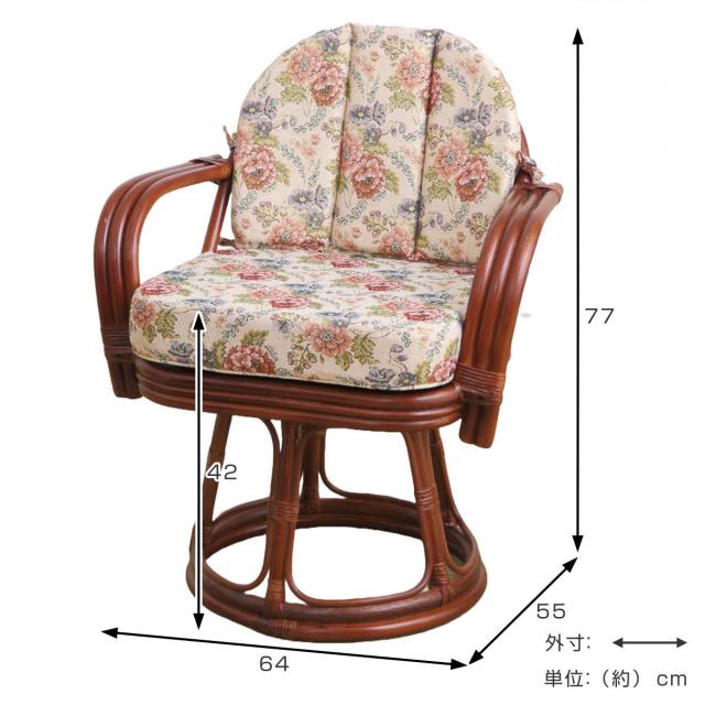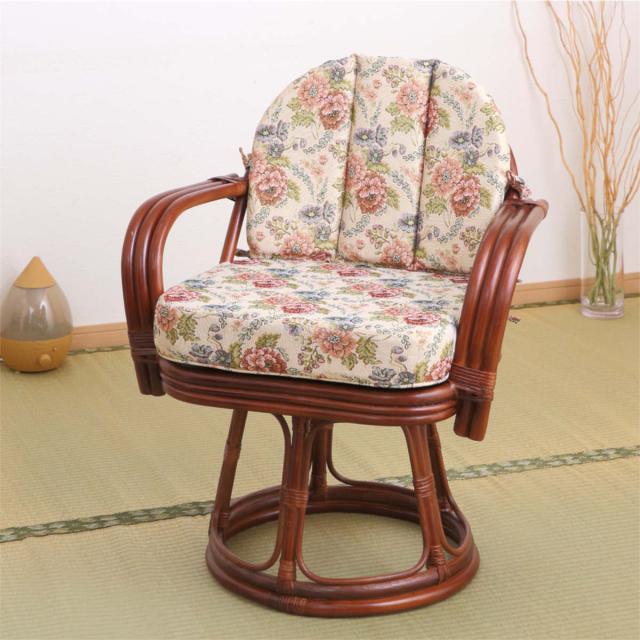 籐 回転座椅子 座面高42cm 花柄 軽量 ライトブラウン ( 座椅子 チェア アームチェア ダイニング 腰かけ 籐製 ラタン 回転椅子 腰掛け 回転式チェア 回転 クッション ハイチェア いす イス )