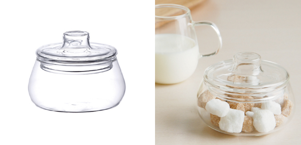 フタ付きで保存もできる、かわいいフォルムのシュガーポットフタ付きでそのまま保存もできる耐熱ガラス製のシュガーポットです。口径が大きいのでキューブ状の砂糖も取り出しやすく、ころんとしたかわいい形です。暮らしに寄り添う使い勝手の良さと、シンプルでクリアな美しさで、贈り物にも最適です。