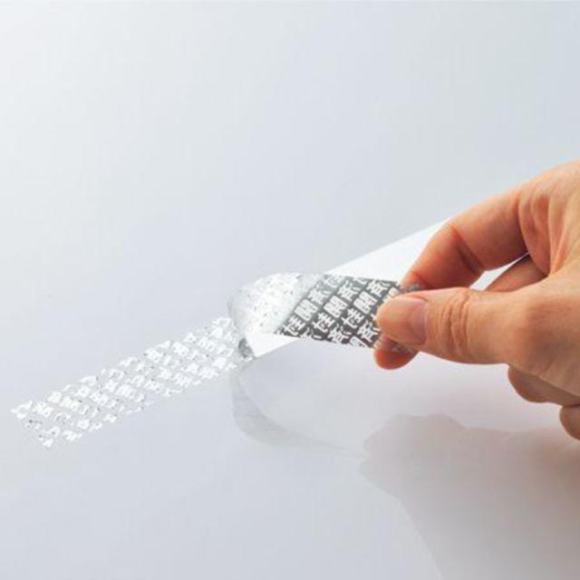 ●ラベルをはがそうとするとテープ表面が破壊され、きれいにはがすことが不可能となり、ラベルの再使用や製品の荷抜き、改ざんなどを防止します。