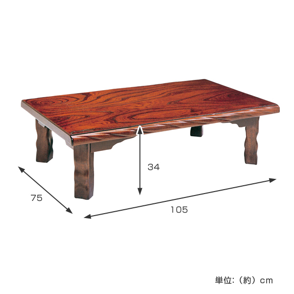 座卓 幅105cm 折れ脚 若草 ローテーブル 日本製 ( 座卓テーブル 和風座卓 座敷机 和室 畳 座敷 木製 天然木 折りたたみ ちゃぶ台 テーブル 完成品 長方形 ケヤキ 突板仕上げ 欅 折り畳み リビングテーブル 机 )