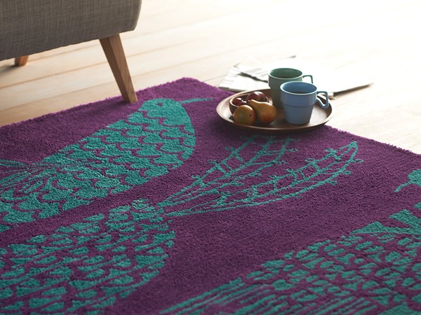 ラグならではのふっくらとした厚み。心がうきうきと楽しくなるカラー。思わず身を預けたくなるような、柔らかい肌触り。それらが一体となって、ラグの中に描かれたアニマルモチーフが存在感豊かにこちらに語りかけてくるようです。