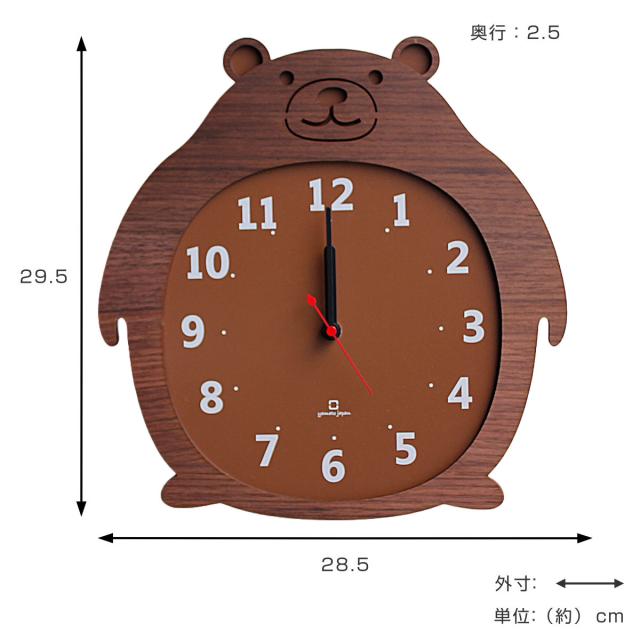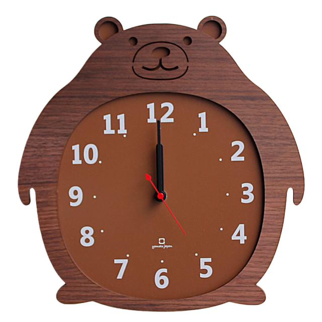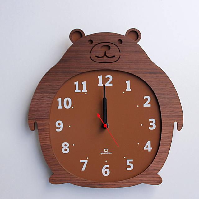 ぽってりとした丸いシルエットがかわいらしいくまの掛け時計です。高級感のあるウォールナット材を使用しているので、シックで落ち着きのある雰囲気に。リビングはもちろん、子供部屋にもおすすめです。