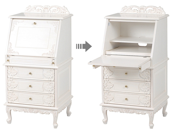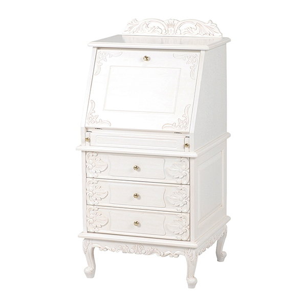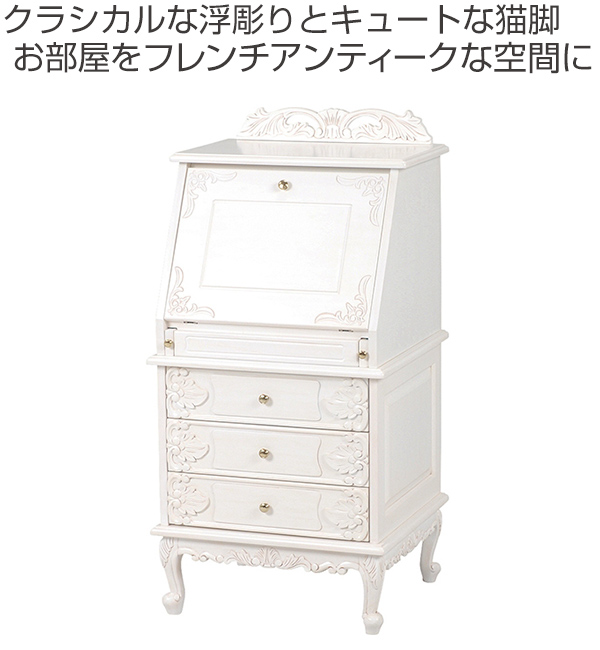 ライティングテーブル ヴィオレッタ 引き出し 3段 幅58cm ホワイト ( ライティングビューロー パソコンデスク チェスト 折りたたみ収納 パソコン PCデスク 小物収納 リビング収納 引出し 引出 猫脚 ネコ足 )