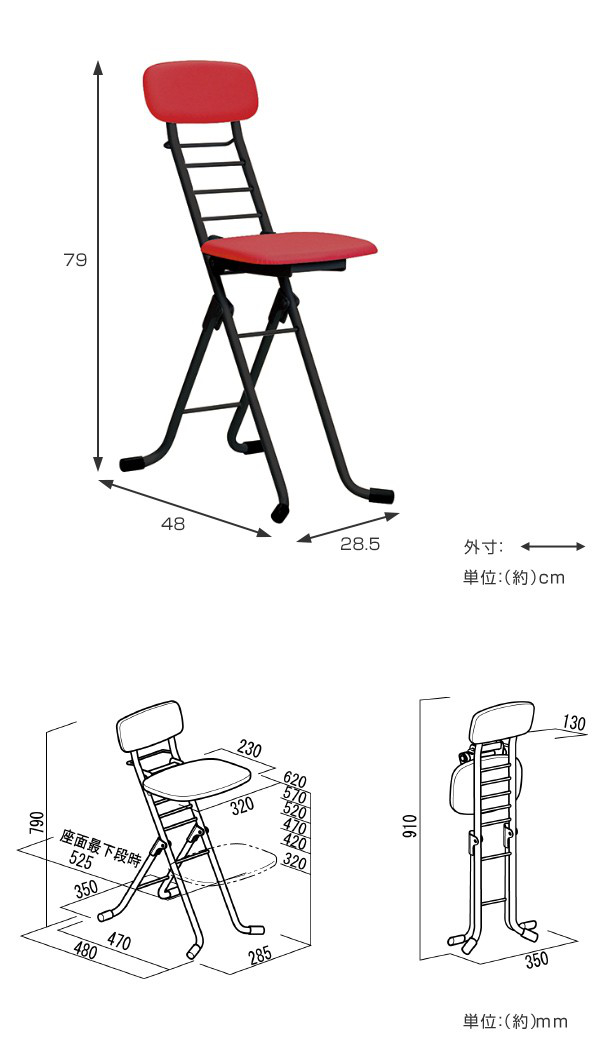 | 備考 | ※折りたたむときは座面を取り外してください |