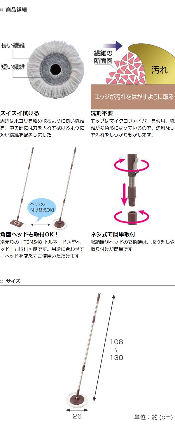 トルネード回転モップ用 丸型モップ マイクロファイバー 柄付き 伸縮式 ( トルネードスピンモップ 水拭きモップ 掃除用品 トルネードモップ フローリングワイパー 床掃除 フローリング 水拭き )