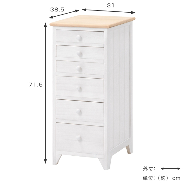 チェスト 6段 シャビーウッド 幅31cm ( 収納チェスト 収納 引き出し キャビネット サイドチェスト 天然木 完成品 引出し収納 多段チェスト 木製 ホワイト ナチュラル おしゃれ チェストタンス 完成品)