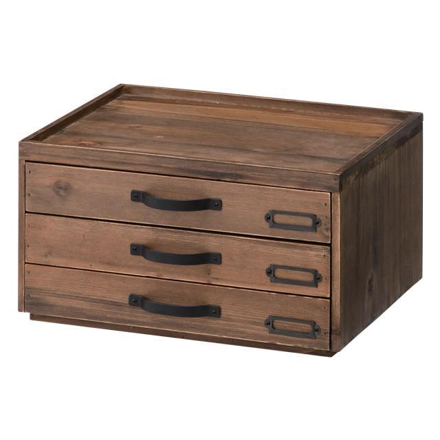●木肌の濃淡が味わい深い、天然木(杉)を使用したアンティーク風3段チェストです。