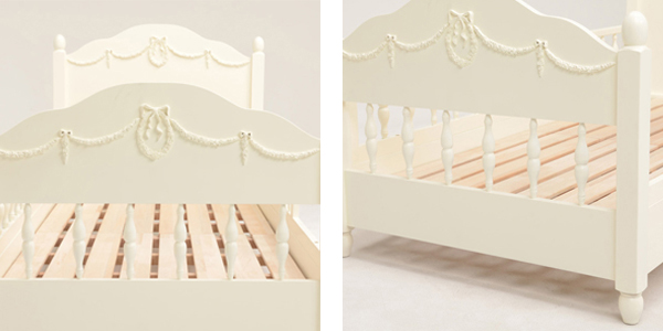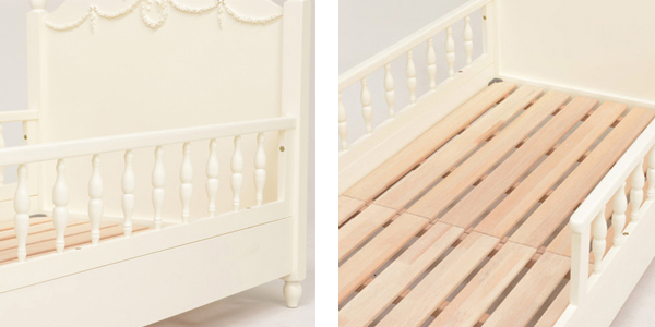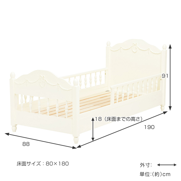 セミシングルベッド 柵付 ショートタイプ クラシック調 ヴィオレッタ ロマンチック 幅88cm ( ベッドフレーム セミシングル ベッド 寝具 ろくろ脚 すのこ スノコ すのこベッド スノコベッド キッズ家具 子供用家具 )