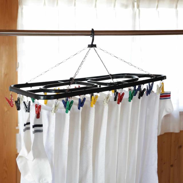 《 LH13744 洗濯用品 ランドリーグッズ ランドリー用品 小物干し タオル干し かくし干し 下着 靴下 家事 便利 軽い 軽量 丈夫 チェーン 洗濯ばさみ ピンチ 取替え可能 取り外せる 取替え 36個 カラフル ブラック 折り畳み おりたためる 谷折り式 省スペース 絡みにくい スムーズ 時短 カモイ てすり L字 部屋干し 室内干し 外干し 屋外 ベランダ バルコニー 新生活 一人暮らし ひとり暮らし 下宿 学生 デザイン性 お洒落 オシャレ 生活 》