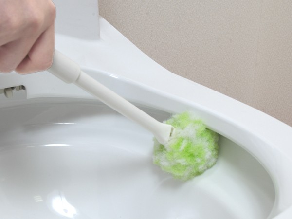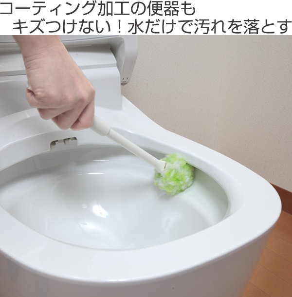 特殊形状の繊維は、洗剤を使わなくても汚れを落とすことができ、コーティングされた便器もキズを付けません。クリーナー部が植毛ではなくソフトな繊維だから、便器のフチ裏も洗いやすく水はねしません。