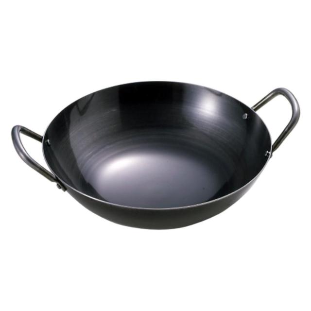 中華鍋 36cm ガス火専用 鉄製 魚菜 日本製 ( ガス火対応 直火専用 共柄中華鍋 中華なべ 両手中華鍋 炒め鍋 両手鍋 36センチ 深型 深鍋 万能鍋 本格的 中華料理 鉄 ブルーテンパー 鉄製調理器具 フライパン 深型)