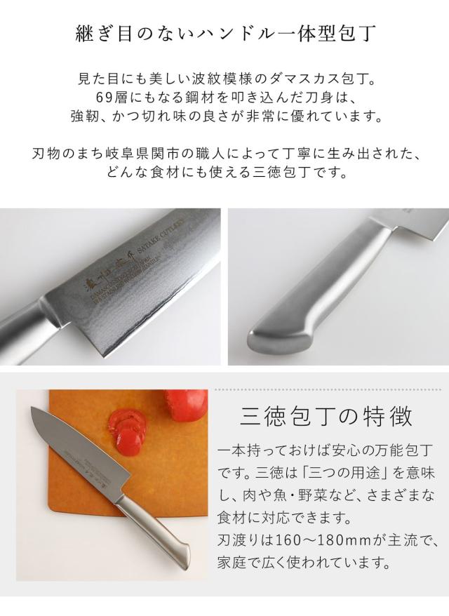 三徳包丁 17cm 鍛接ダマスカス鋼 69層 濃州正宗 日本製 ( 包丁 万能包丁 料理包丁 分化包丁 日本製 17cm ダマスカス 切れ味抜群 キッチンナイフ キッチンツール 万能 ナイフ 調理器具 ステンレス 一体型 )