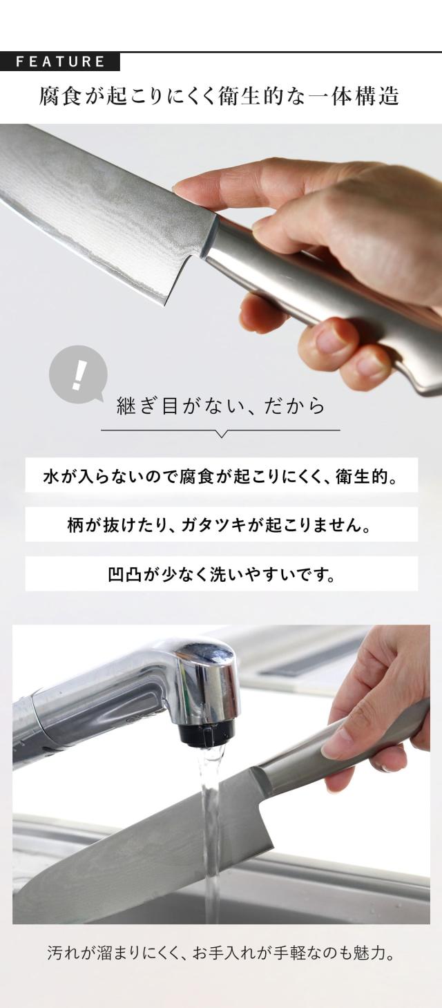 刃を美しく飾るだけでなく包丁の強度と耐久性も高めており、耐久性に優れ、錆びにくく、鋭い切れ味、この全てを叶えた見た目にも美しい包丁です。