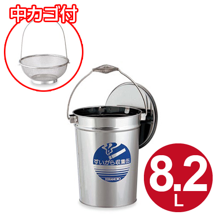 テラモト すいがら収集缶 ステンレス製 8.2L 中カゴ付 ( 業務用 灰皿 フタ付き バケツ 缶 8L 8リットル 煙草 タバコ 吸い殻入れ ステンレス はいざら たばこ 吸殻 すいがら 回収 取っ手付き すいがら入れ 現場 喫煙所 )
