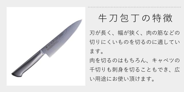 ![]() 三徳包丁 | ![]() 牛刀 21cm | ![]() 牛刀 18cm |