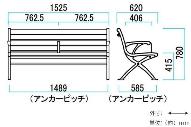※ご覧のページは「ベンチ 手すり付 肘付背付きタイプ 152.5cm」の販売ページです。