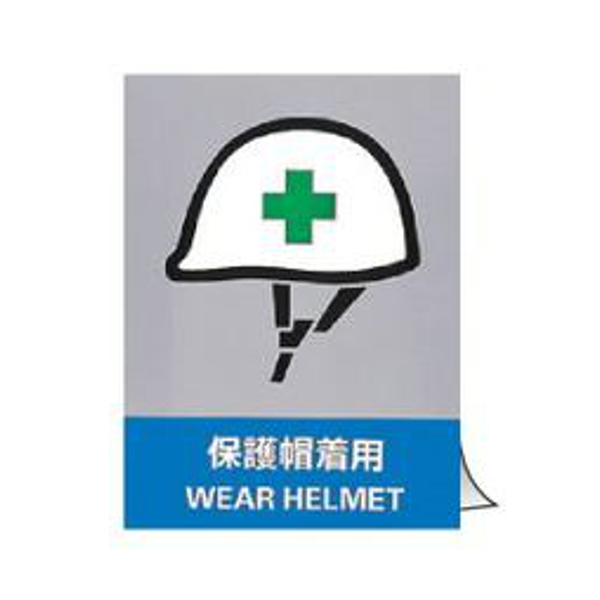 安全標識ステッカー 「 保護帽着用 」 英文字入り 5枚組 16×12cm ( 標示シール 英語 看板 安全標識 安全 注意喚起 標識 表示 ステッカー シール 標示 作業 安全用品 注意 喚起 安全グッズ 日本語 二カ国語表記 保護帽 着用 )