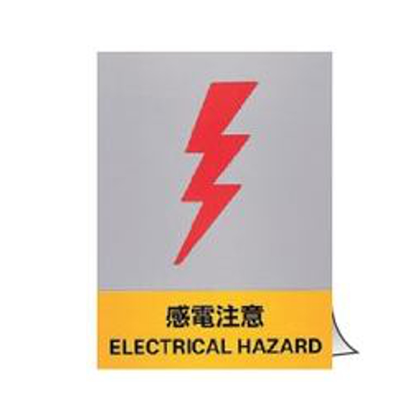 安全標識ステッカー 「 感電注意 」 英文字入り 5枚組 16×12cm ( 標示シール 英語 看板 安全標識 安全 注意喚起 標識 表示 ステッカー シール 標示 作業 安全用品 注意 喚起 安全グッズ 日本語 二カ国語表記 感電 )