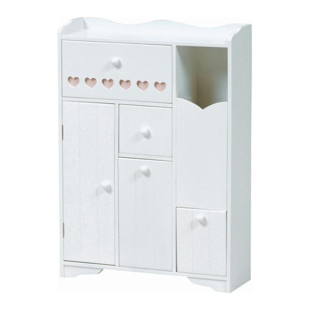 ●清潔感のあるホワイトに、優しい色みのピンクのハートがかわいらしいトイレラックです。