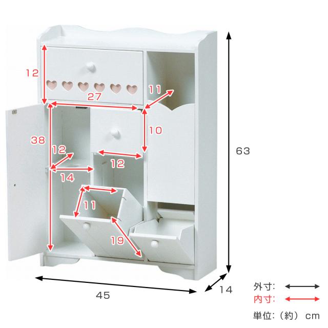 | サイズ | 約 幅45×奥行14×高さ63(cm) ダストボックス内寸:約 幅11×奥行11×高さ19(cm) |