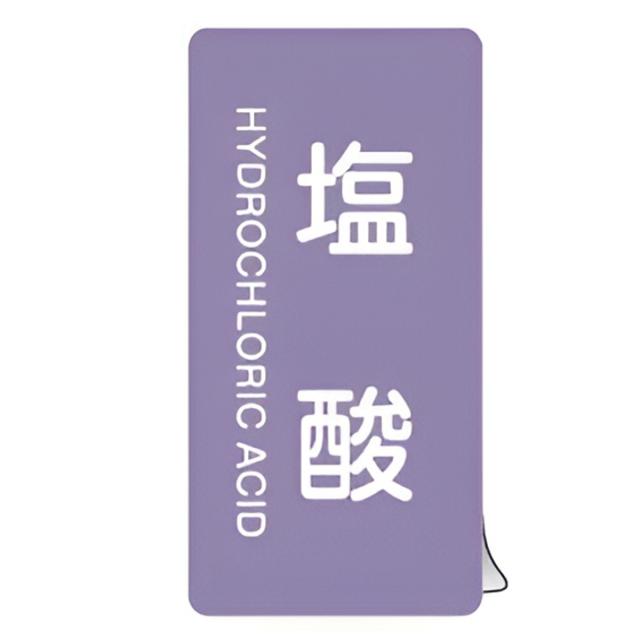 JIS配管識別アルミステッカー 酸またはアルカリ関係 「 塩酸 」 縦書き Sサイズ 10枚組 ( 表示シール アルミシール JIS 配管識別 識別表示 バルブ表示 ステッカー 安全用品 酸 アルカリ 配管明示ステッカー 配管明示 明示 配管 )