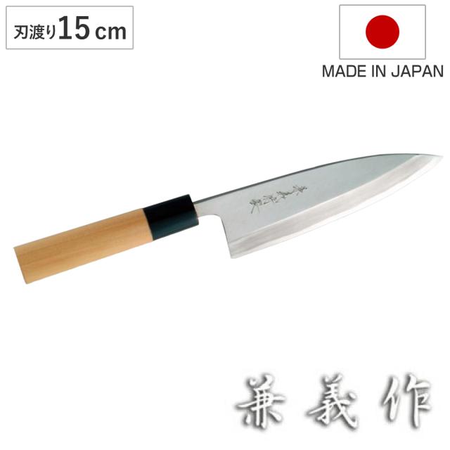 出刃包丁 18cm 兼義作 水牛口 和包丁 日本製 ( 出刃 包丁 魚包丁 魚 捌く でば包丁 ほうちょう 18センチ 180mm 180ミリ 鋼 高級 切れ味 木柄 調理小物 調理道具 キッチングッズ キッチンツール )