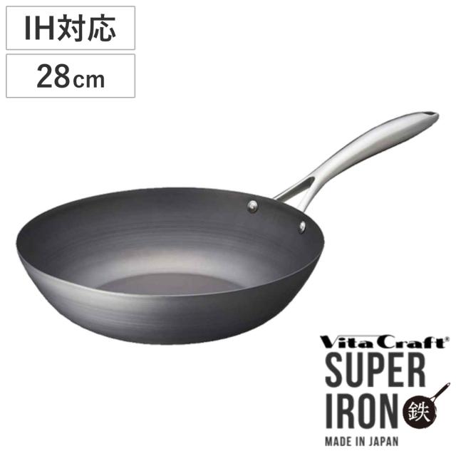 Vita Craft 深型フライパン 28cm IH対応 鉄製 スーパー鉄 No.2006 ウォックパン ( ビタクラフト ガス火対応 鉄フライパン 金属ヘラOK 日本製 28センチ 鉄 フライパン 深型 フライパン ih対応 28cm)