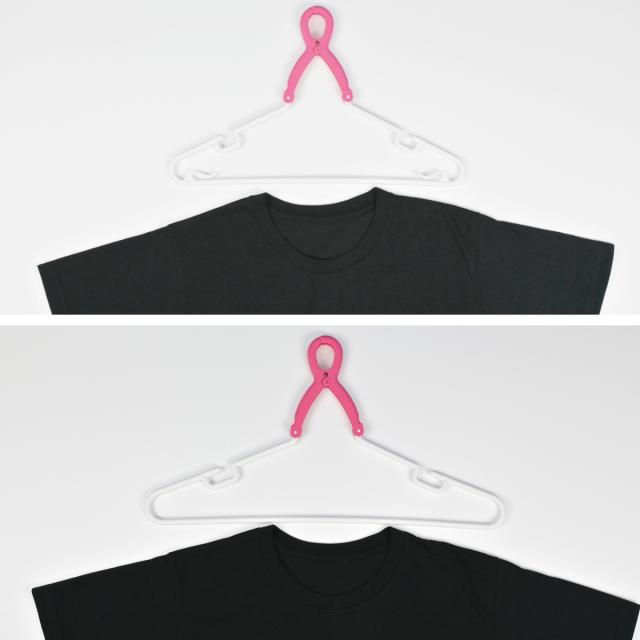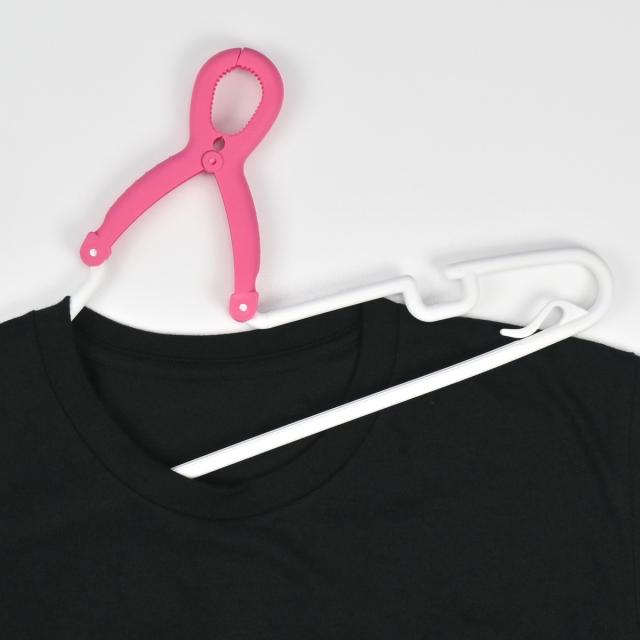 襟元をを伸ばさずにハンガーに衣類を通せるので、快適に洗濯物を干せます。肩部を握りハンガーを変形させれば、襟首を伸ばさずに服に簡単に差し込むことが出来ます。