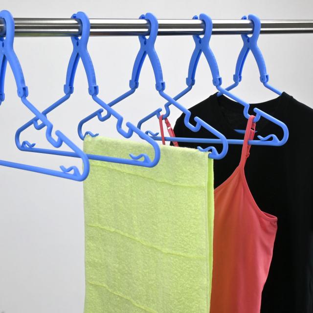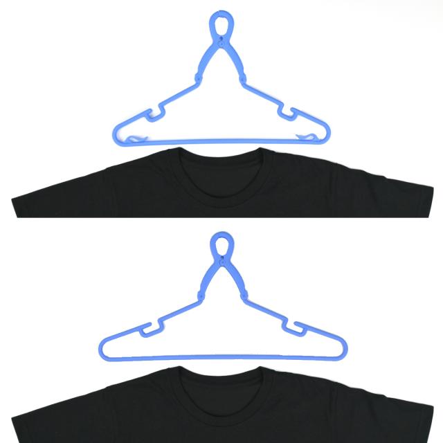 襟元をを伸ばさずにハンガーに衣類を通せるので、快適に洗濯物を干せます。肩部を握りハンガーを変形させれば、襟首を伸ばさずに服に簡単に差し込むことが出来ます。