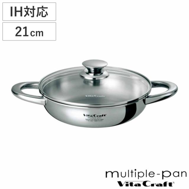 Vita Craft マルチパン 25cm IH対応 2.9L No.4857 両手鍋 ( ビタクラフト ガス火対応 ステンレス 蓋付き 両手 鍋 無水調理 無油調理 VitaCraft 無水鍋 調理鍋 ステンレス鍋 なべ 25 センチ 余熱調理 )
